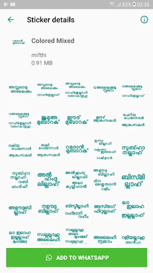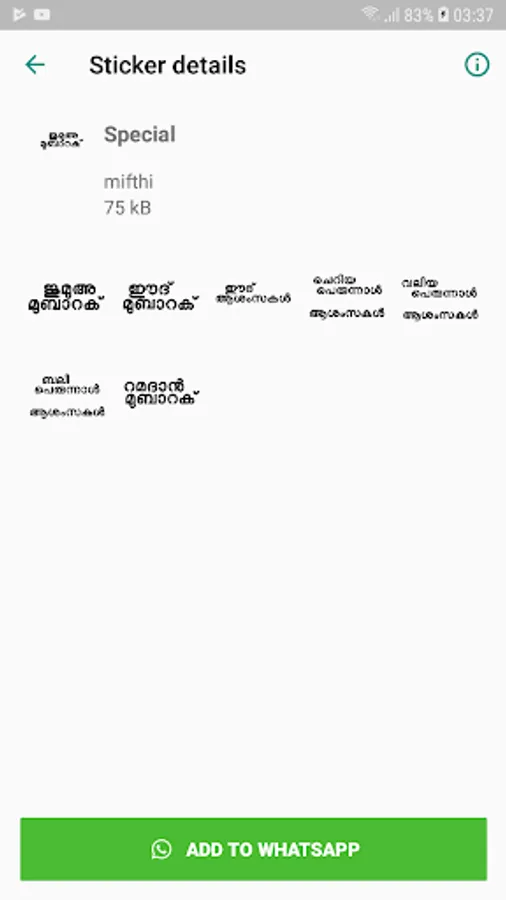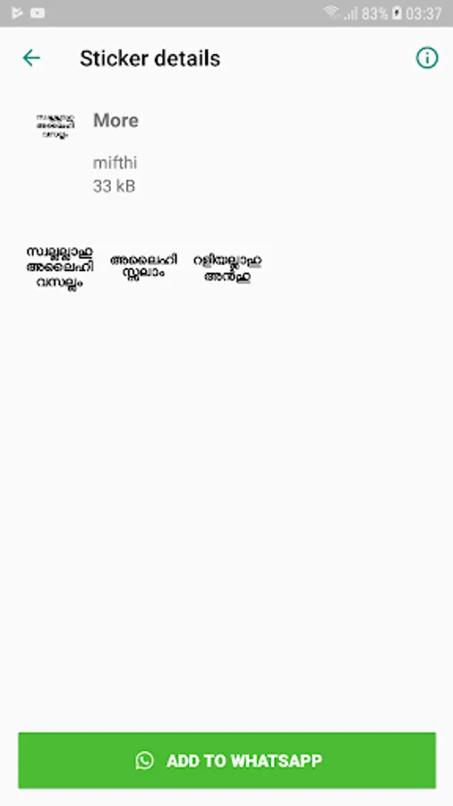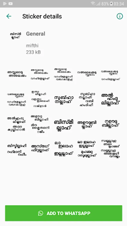 This WhatsApp sticker pack app contains stickers related to Islamic greetings and communication. These stickers are labelled with Malayalam Text.