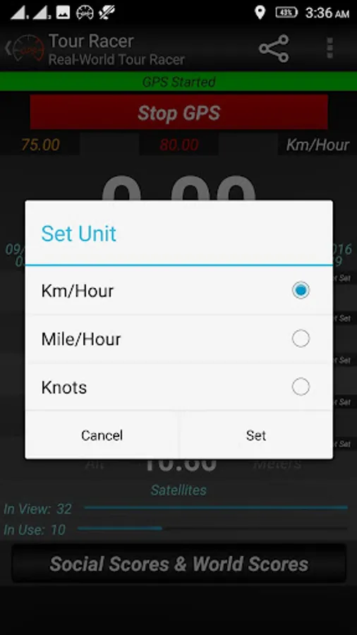 4. Tap the "Start GPS" button within the Tour Racer (Grant the permission if asked).