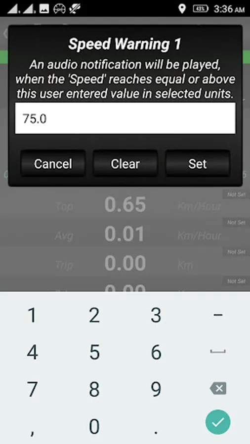 Once the GPS startup is finished, wait for the speedometer to reach 0.00 (if it is not).