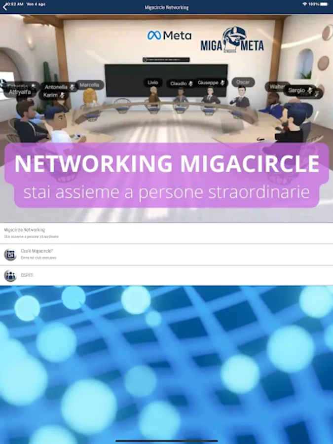 The first community and academy to do business and achieve success with the metaverse. MIGAVERSE offers weekly continuing education exclusively with Meta Quest compatible VR headsets. Top-notch trainers are in attendance every week for a one-of-a-kind experience. On Tuesdays at 18.30 instead we hold the MIGACIRCLE aperitif with the possibility of meeting great CEOs, Speakers and famous personalities from the show business, where we will talk about everything and also about the metaverse.