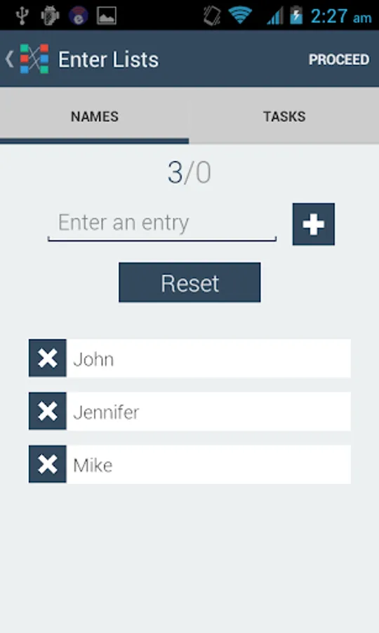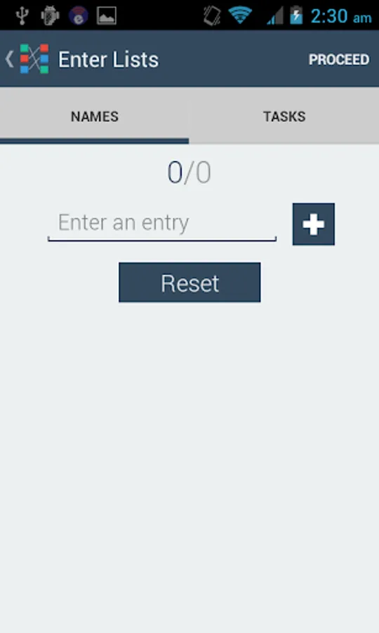 2. Enter entries for the 2 lists. You will be able to proceed when you have entered the same number of entries for both lists.