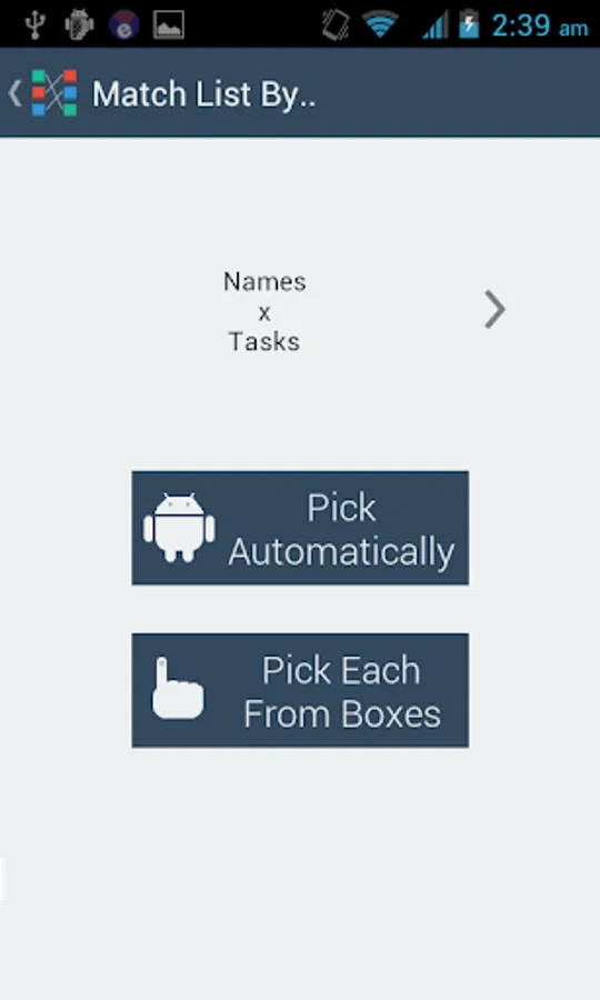 3. Choose to either let the app automatically and quickly match the 2 lists or to manually draw from randomized boxes.