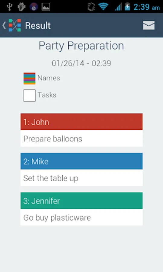 You can let the app automatically match the 2 lists for you or manually draw from boxes randomly ordered.