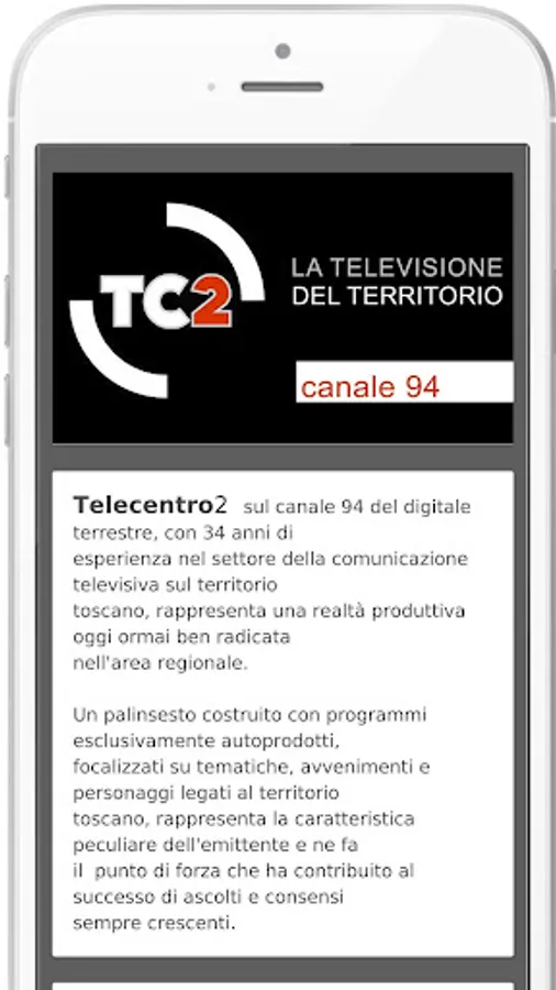 Telecentro2 94 on the digital terrestrial channel, with 34 years of experience in the field of television communication in Tuscany, is a production reality today already well established in the regional area. A palimpsest built exclusively with self-produced programs, focused on issues, events and personalities linked to the Tuscan territory, is the peculiar characteristic of the issuer and makes the strong point that has contributed to the success of plays and increasing recognition.
