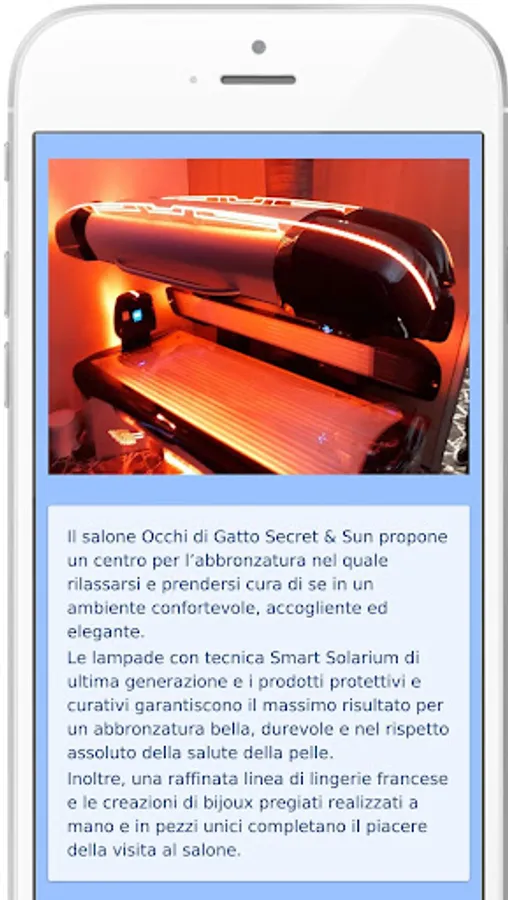 The salon Cat's Eye Secret & Sun offers a center for tanning in which to relax and take care of themselves in a comfortable, cozy and elegant.