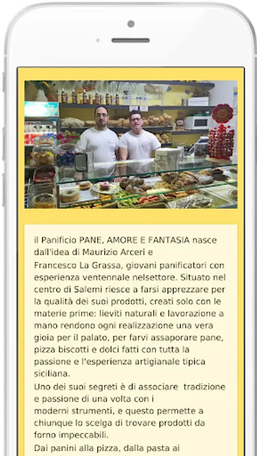 The Bakery BREAD, LOVE AND FANTASY is the brainchild of Maurizio Arcieri and Francesco La Grassa, young bakers with twenty years experience in the industry. Located in the center of Salemi he can be appreciated for the quality of its products, created only with raw materials: natural yeasts and handwork making each creation a real joy for the palate to savor bread, pizza biscuits and cakes made with all the passion and the typical Sicilian handicraft experience.
