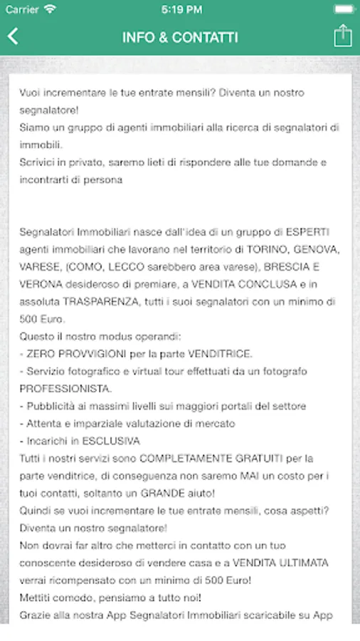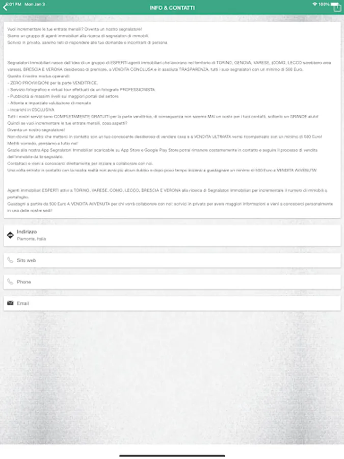 Would you like to increase your income in an undemanding and very profitable way without having to sell anything? We are a group of real estate agents and we are looking for REPORTERS for Piedmont / Liguria and Lombardy, we sell at zero commission on the seller side by offering an excellent service with advertising on all sites (IDEALISTA.IT/CASA.IT/IMMOBILIARE.IT/SUBITO .IT / etc etc) and professional and free photographic service. For each property reported, purchased and sold by you, you will be awarded a commission starting from € 500 and reaching up to € 3,000 for each completed transaction. All you have to do is refer us to your contact, we'll take care of the rest. Download the APP, sign up and start earning with us. You will be assigned a dedicated agent who will update you at every stage, from acquisition to sale!