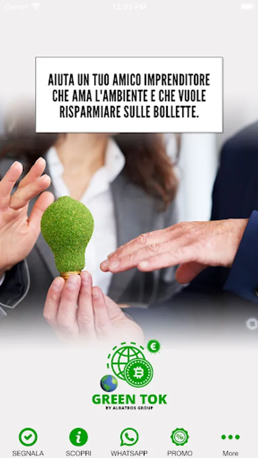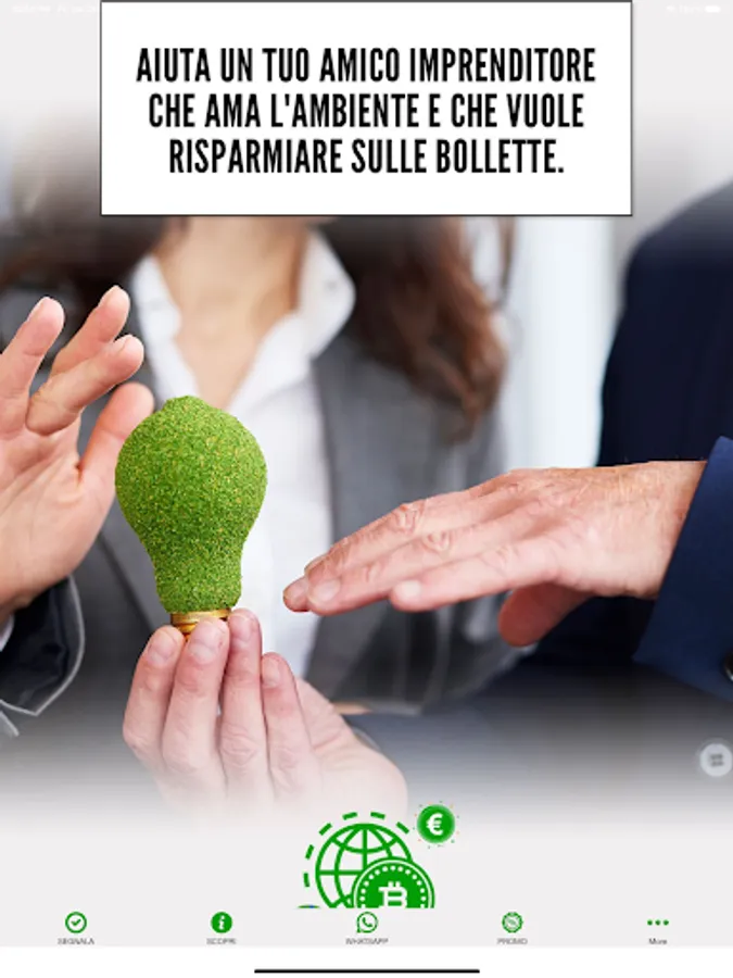 Thanks to our free application GREENTOK (green token) you can earn simply by referring friends and acquaintances who want to have at no cost a dedicated consultant for their electricity, gas and telephony services that allows them to reduce consumption and costs of their utilities while respecting the environment.