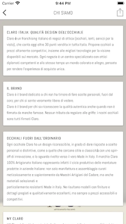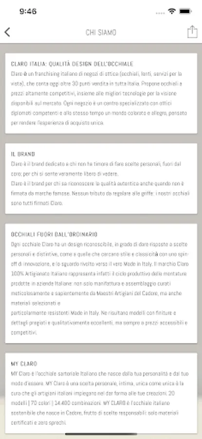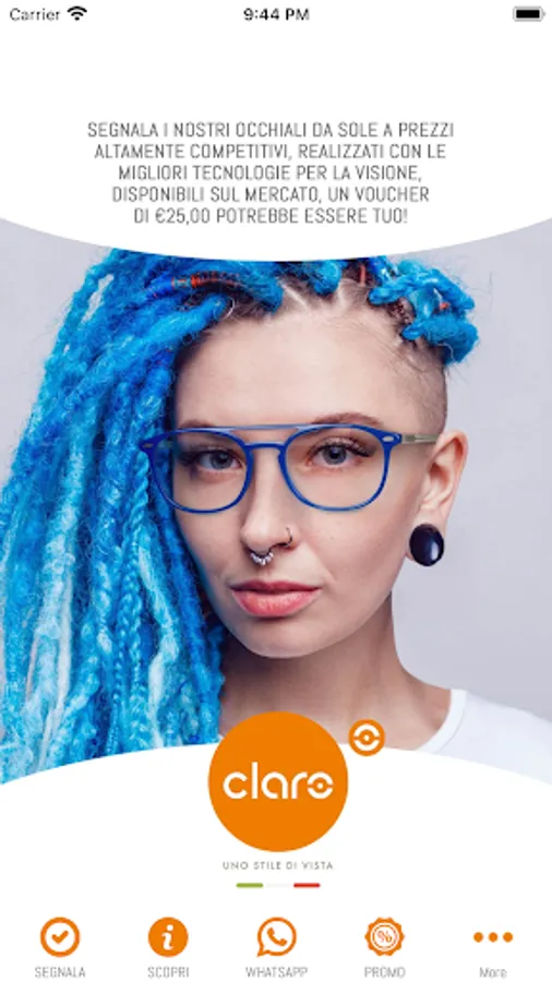 Enter the world of Ottica Claro thanks to the new application that allows you to take advantage of all the advantages and offers that the Italian eyewear brand has designed for you. Claro is dedicated to those who are not afraid of making personal choices, outside the pack; for those who feel truly free to see. Thanks to the application, you will always have access at any time to our free services, our team of specialized opticians and our 100% Italian Handicraft collections produced by the skilled hands of the Cadore artisans.