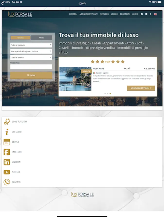Luxforsale is the reference portal in Italy and Europe for the promotion of luxury properties.