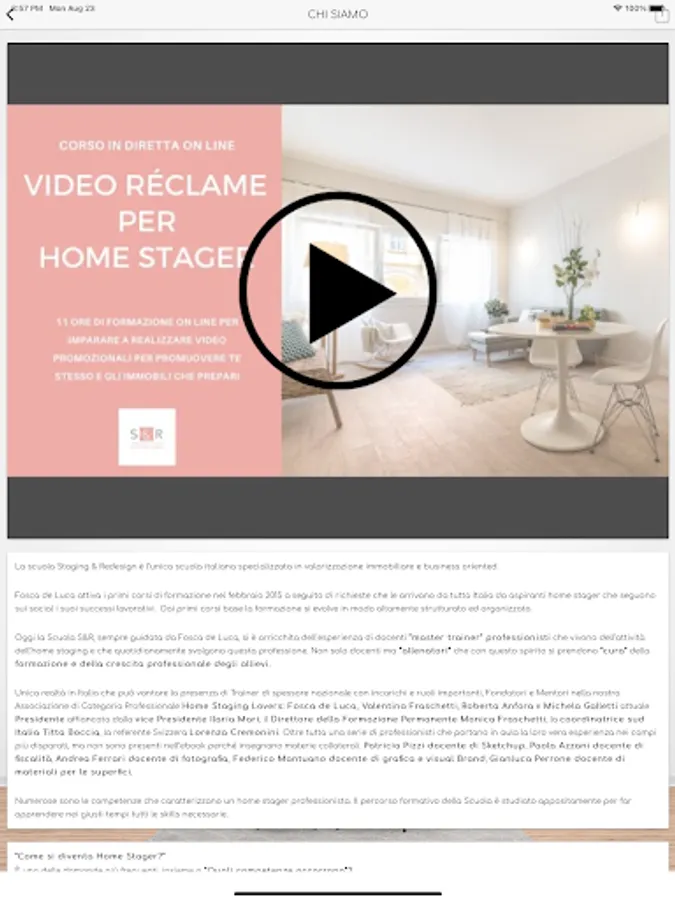 The Staging & Redesign school is the only Italian school specializing in real estate development and business oriented. Fosca de Luca activated the first training courses in February 2015 following requests from all over Italy from aspiring home stagers who follow her work successes on social networks. From the first basic courses the training evolves in a highly structured and organized way. Today the S&R School, always led by Fosca de Luca, has been enriched by the experience of professional "master trainers" who live from home staging and who practice this profession every day. Not just teachers but "coaches" who, with this spirit, take care of the training and professional growth of the students.