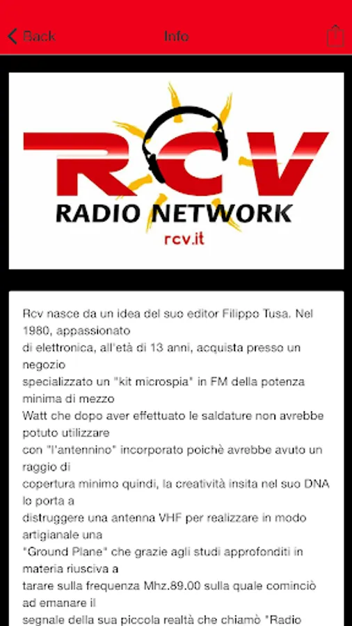 Rcv brainchild of his editor Philip Tusa. In 1980 he starts transmitting the first notes in the ether through rudimentary equipment, assembled by the same Tusa. which after many vicissitudes, in 1996 it detects the "Radio Castelvetrano property" and immediately turns in "RCV 100.7"