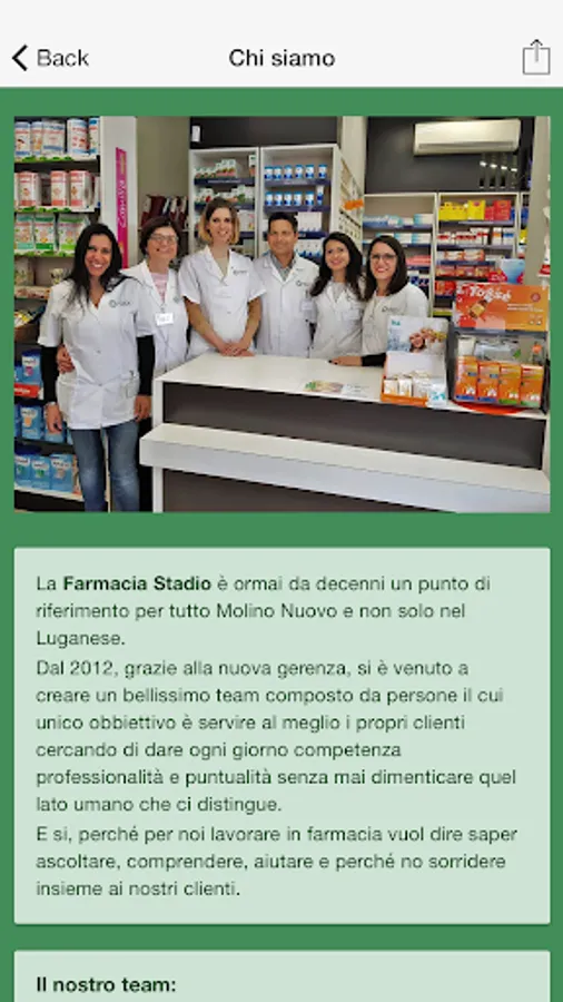 The Pharmacy Stadium has been for decades a reference point for all Molino Nuovo and not just in the Lugano. Since 2012, thanks to the new masthead, it has come to create a beautiful team made up of people whose only goal is to better serve its customers trying to make every day competence professionalism and punctuality without ever forgetting the human aspect that distinguishes us. And yes, because for us to work in a pharmacy means knowing how to listen, understand, help and why not smile with our customers.