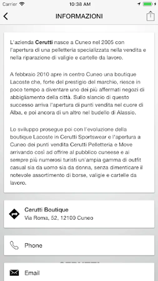 The Cerutti company was founded in Cuneo in 2005 with the opening of a leather goods shop specialized in the sale and repair of suitcases and briefcases.