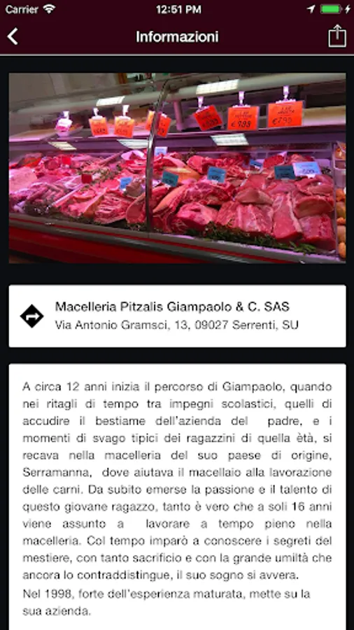 The company, today operates in the municipality of Serrenti, where it has been operating for about 20 years and where the company's approach has always been to offer its customers exclusively fresh and quality meat.