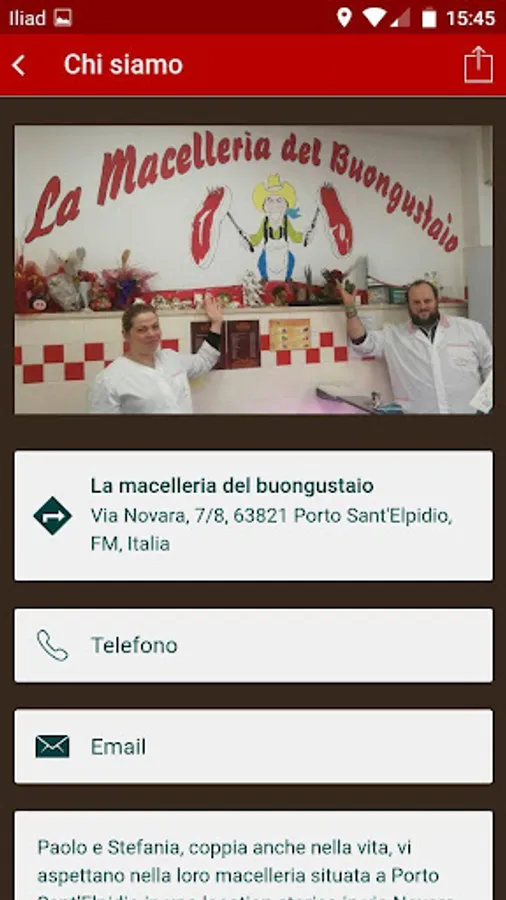 Paolo and Stefania, a couple also in life, are waiting for you in their butcher shop located in Porto Sant’Elpidio in a historic location in via Novara at no. 7/8 Young but with a long experience behind them, Paolo and Stefania have made sure that their activity does not stop at being just a simple butchery The gourmet butchery in fact, in addition to offering selected and quality meats, is also proposed as delicatessen, gastronomy, home delivery service and barbeque service One of the strengths that has always distinguished this activity are the "ready / cook", fresh and tasty products prepared every day ready to be cooked in a very short time