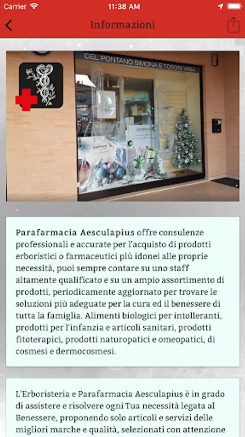 Parafarmacia Aesculapius offers professional and accurate advice for the purchase of the most suitable herbal or pharmaceutical products for your needs, you can always count on a highly qualified staff and a wide range of products, periodically updated to find the most appropriate solutions for care and the well-being of the whole family. Organic food for intolerant people, baby products and health items, phytotherapeutic products, naturopathic and homeopathic products, cosmetics and dermocosmetics. The Herbalist and Parapharmacy Aesculapius is able to assist and solve all your needs related to Wellness, offering only articles and services of the best brands and quality, carefully selected only to have what you truly deserve ... Always the best!