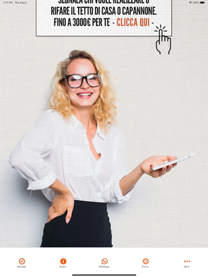 Can a simple real estate report earn you up to € 3000 without lifting a finger? Thanks to my free application you will be able to earn simply by referring friends and acquaintances who want to build or redo the ROOF of your house or your shed. Through my APP you can keep track of the reports, you will be updated on their progress until you receive the notification that you can collect your compensation. The App is completely free and you can share it with other people if you consider it valid. I am really excited to see you in my network of referrers to work together and make money together. Let me introduce myself, I am Valerio Annichiarico of Ital Tetti, and we are specialized in civil and industrial roofing and we create works of art every day. Awareness, teamwork and efficiency are the objectives for which we work in creating safe and long-lasting roofs. Are you looking for a company that can provide you with a sustainable, safe and guaranteed roof? We are the right people for you. Vivi Pro.Tetto