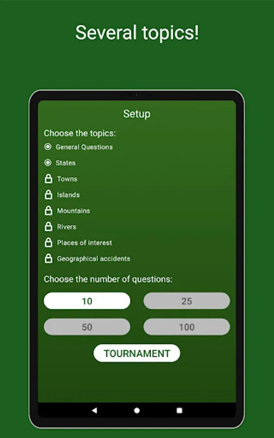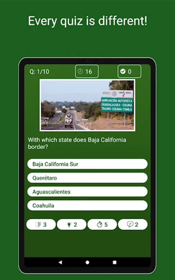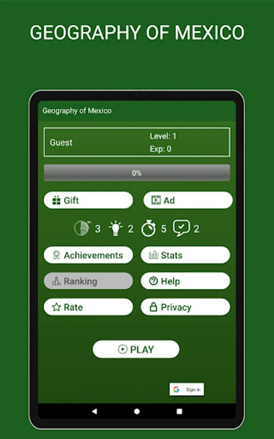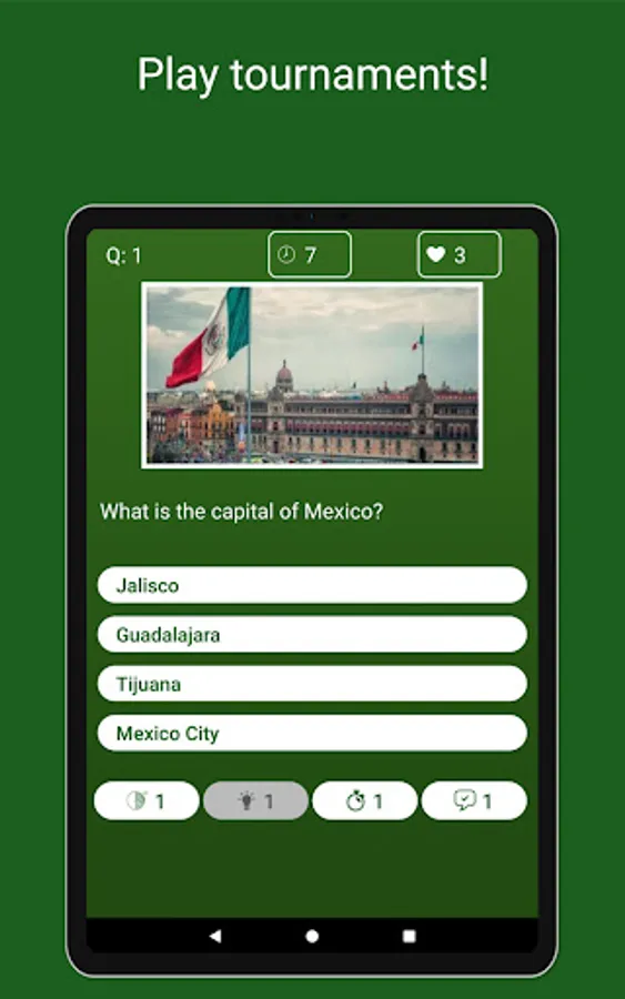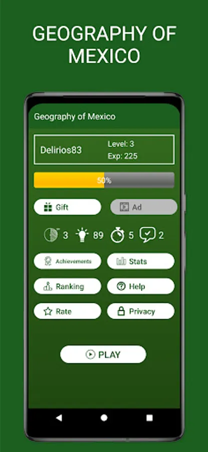 Reach level 10 to unlock the tournaments and fight to be the person who knows the most about the geography of Mexico in the world.