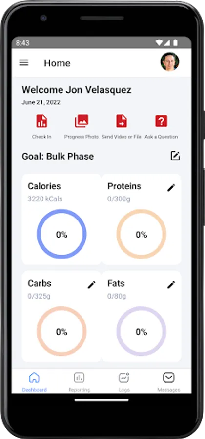 * Track your nutrition intake and report to your coach daily and weekly.