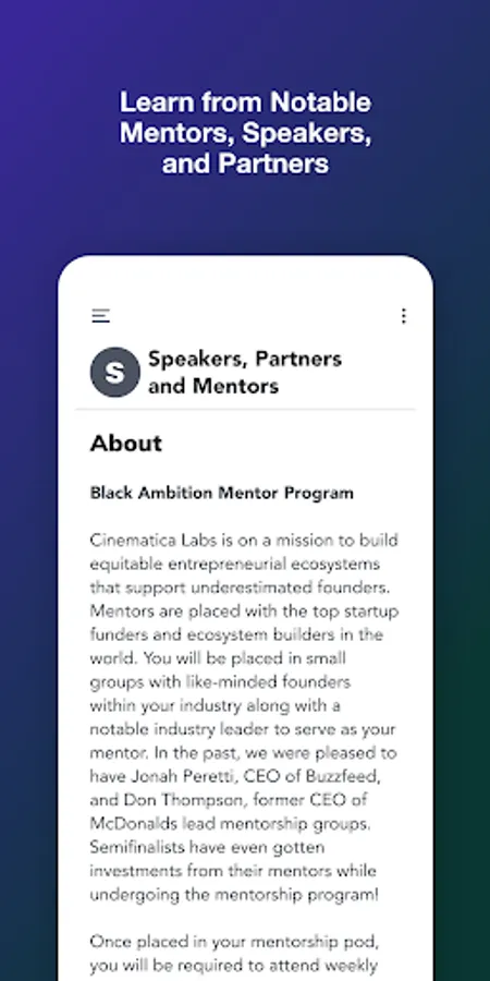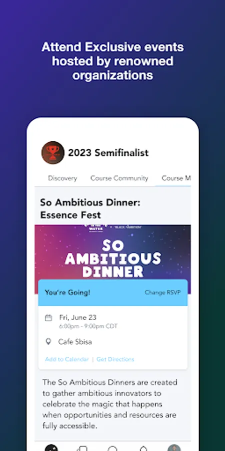 This platform is dedicated to the Semifinalists in the 2023 Black Ambition Prize Competition! Download this app to unlock access to a top-tier mentorship program, access to funding opportunities, an engaging community that feels like your tribe, and so much more.