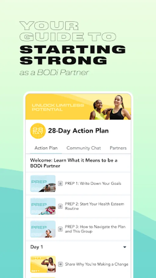 The BODi Partners app is your resource for training and inspiration as you build your BODi business, featuring the new 28-Day Action Plan.