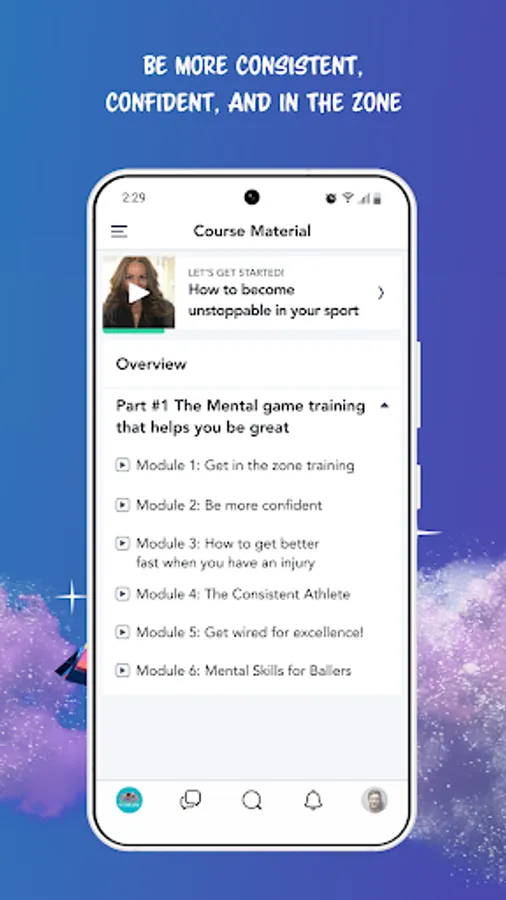 - Skills Training: Engage in intensive mental skills training modules, curated and updated regularly to help you stay on top of your game, no matter the sport or level and watch as your mental resilience, focus, and overall performance improves.
