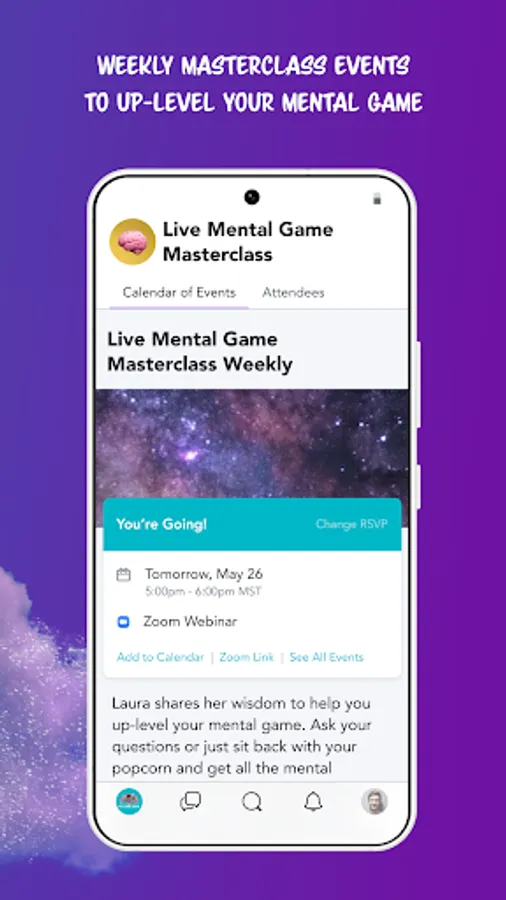 - Community Network: Connect with fellow athletes and mental game coaches, exchange ideas, share experiences, and build lasting relationships in the Cosmic Arena.