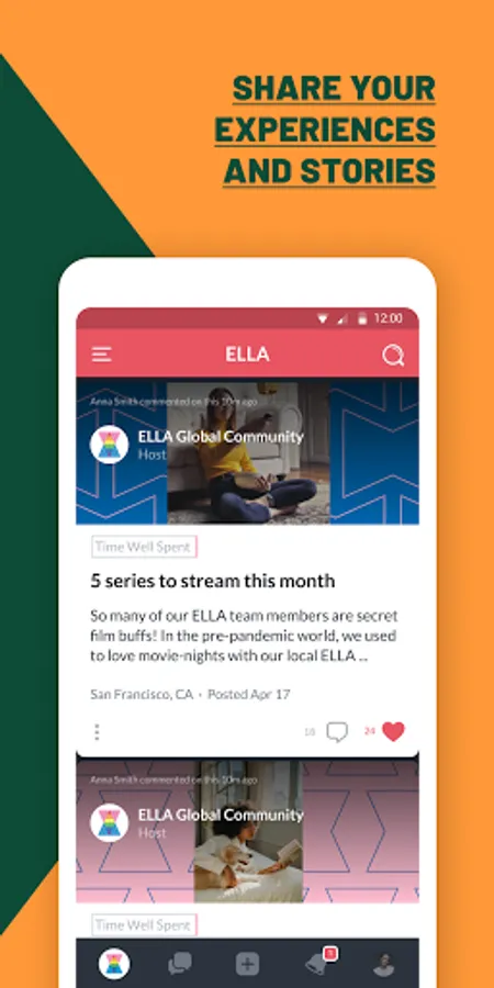 Download ELLA to find your people! Interact with others across the world or around the corner.