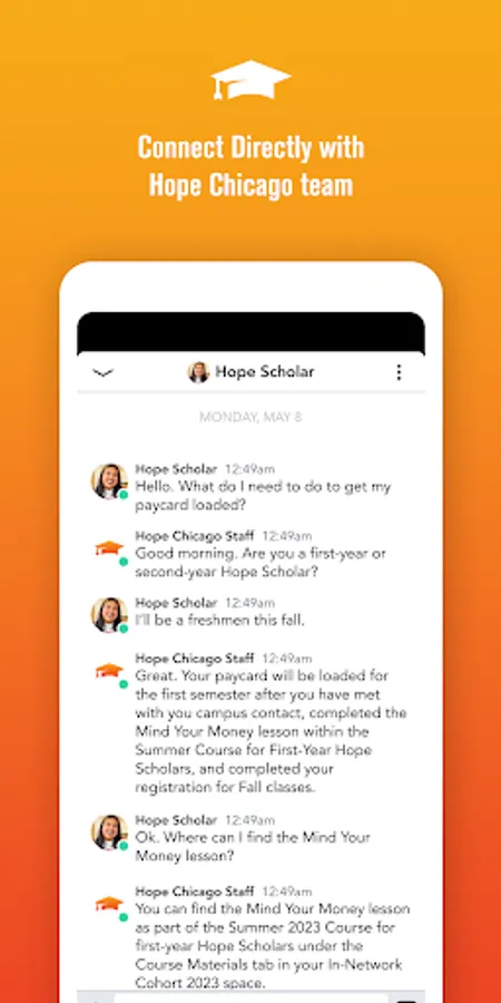 This app is exclusively made for all Hope Scholars—whether you attend an In-Network or Out-of-Network institution. The regular use of this app is critical to your ongoing Hope Chicago scholarship. Join our community today and take a BIG STEP towards a successful postsecondary journey.