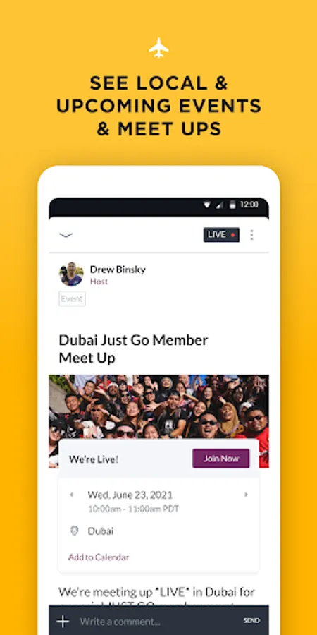 The idea for this JUST GO community was sparked after Drew hosted 30+ meet-ups around the world, in cities like Istanbul, New York, Dubai and Bangkok. Every event was full of energy, smiles and positive vibes, so Drew thought, why not turn this into something bigger?