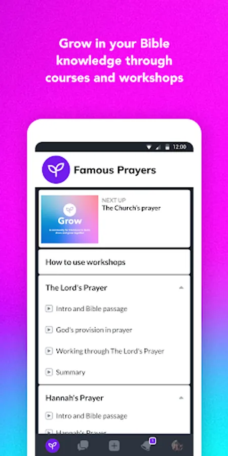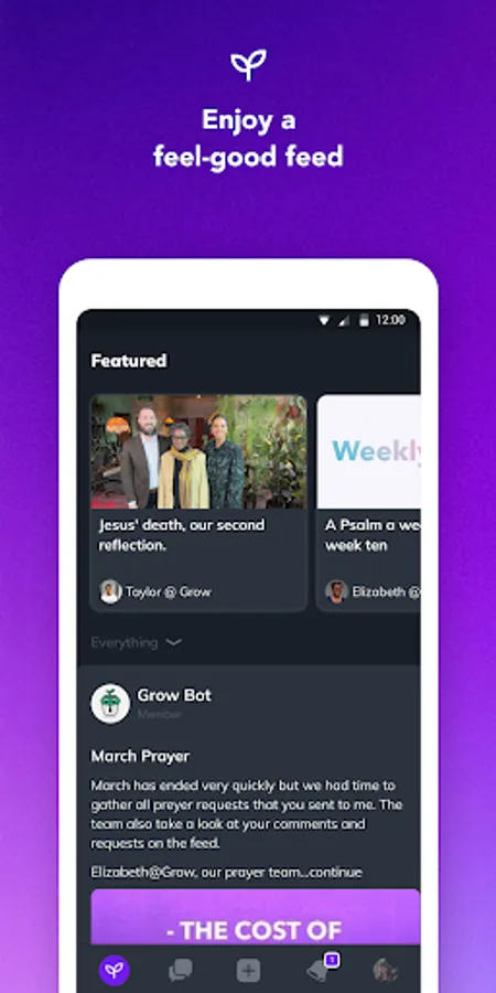 On Grow, you can find a feed full of goodness as our hosts and members share encouragement, truth, and scripture. Not to mention interactive workshops, Bible study courses, and even a prayer space. Our team are ready to stand with you in prayer.