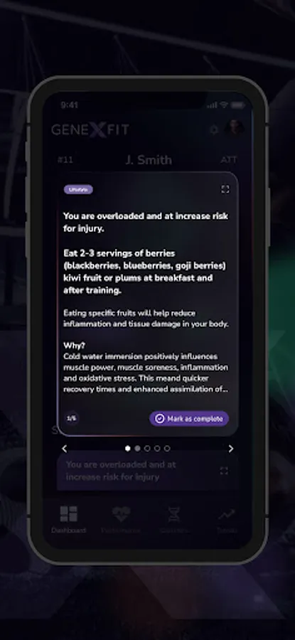 o Daily genetic-based nutrition and lifestyle recommendations to improve health and performance