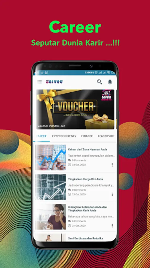 Get the latest information about the world of crypto and learn about the business world in the giveU app, not only that, besides you get information and knowledge, you will also have the opportunity to get gift vouchers every day.