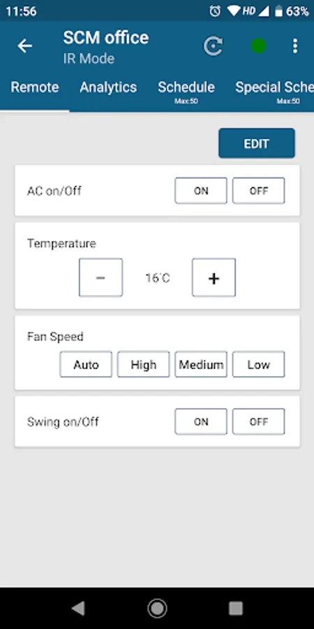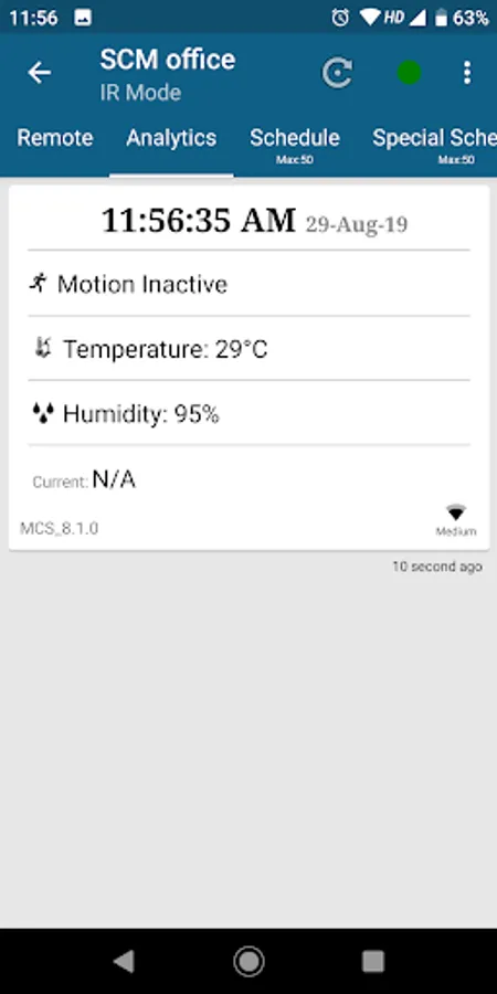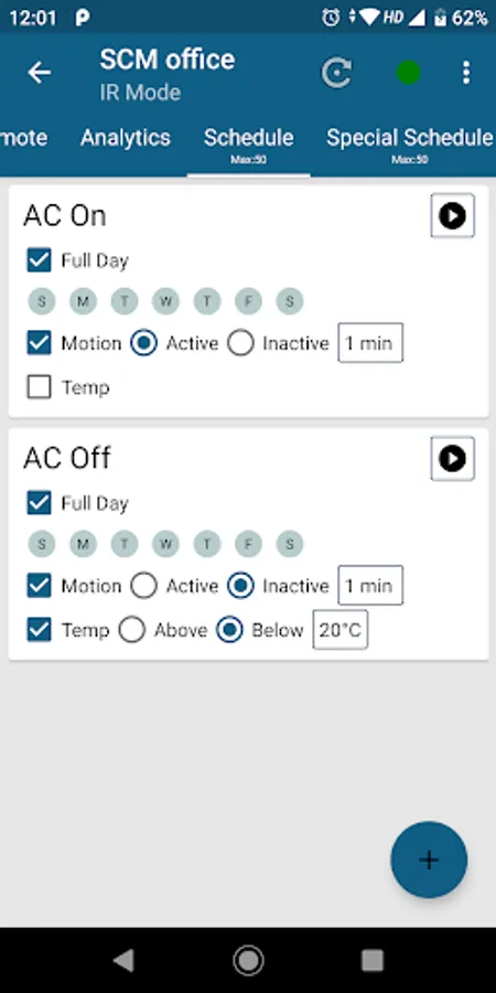 Using the CoolSense App, User can set any schedule using parameters of Real-Time Clock, Human (PIR) Motion Sensor & Temperature Threshold to trigger Air Conditioners via IR Commands (for e.g: Temperature Change, Swing Control, Fan Speed, etc.) or Power Supply cut-ON/OFF in CoolSense Device.