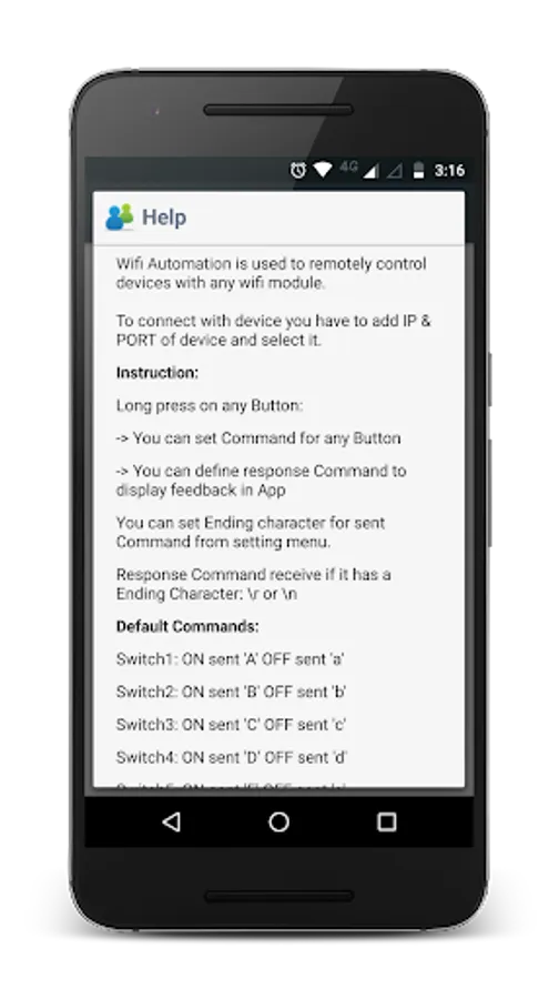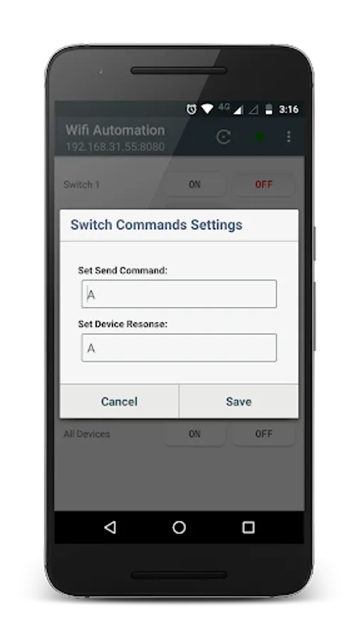 - By, Long pressing of any button You can set Sending Commands and define response Commands to display feedback in App.