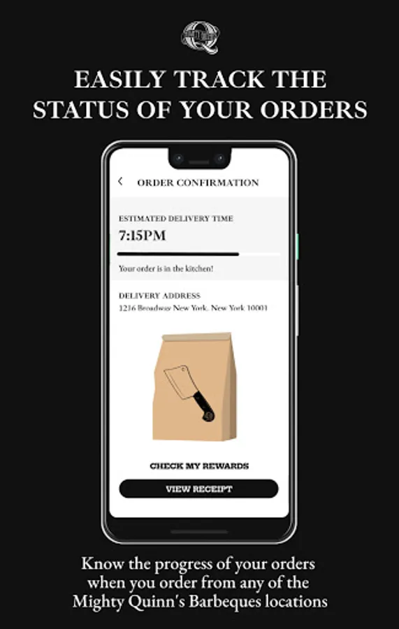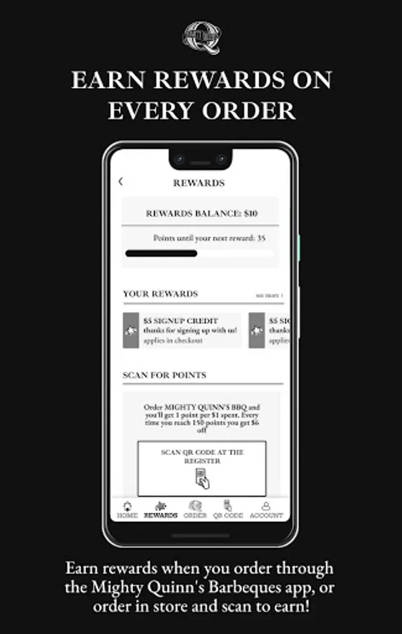 Don't let a line get in the way of your Mighty Quinn's BBQ. The Mighty Quinn's BBQ app allows you to pay with your phone, order ahead and get delivery to your door. You'll also earn rewards for every transaction that's made online or in one of our restaurants.