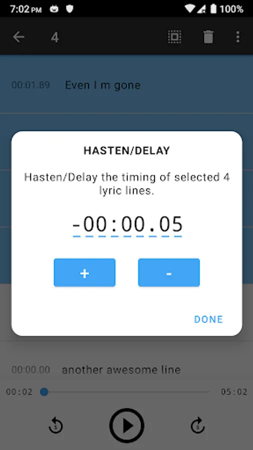 β Adjust lyrics time precisely.