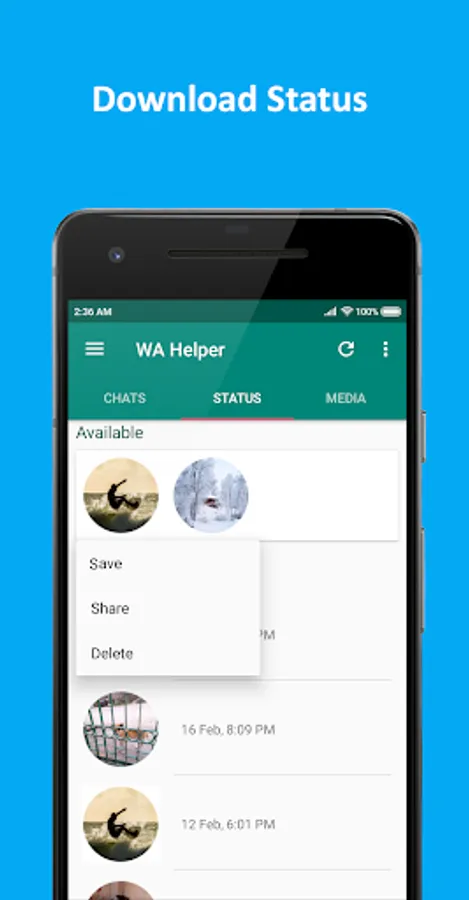 * WA Helper can recover only those messages that you have received after installing this app.