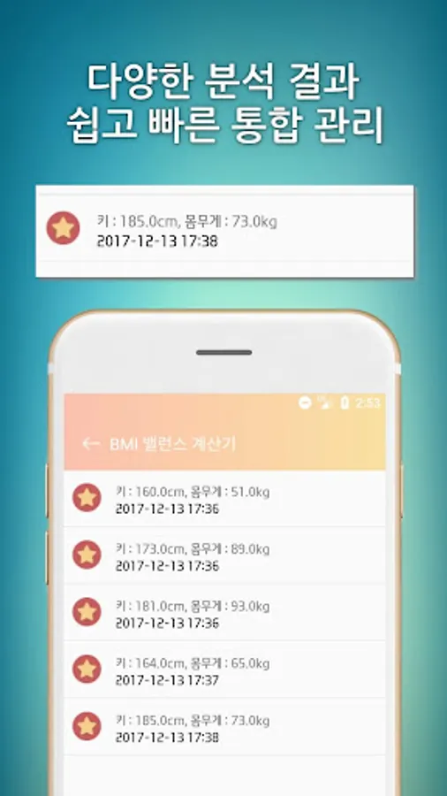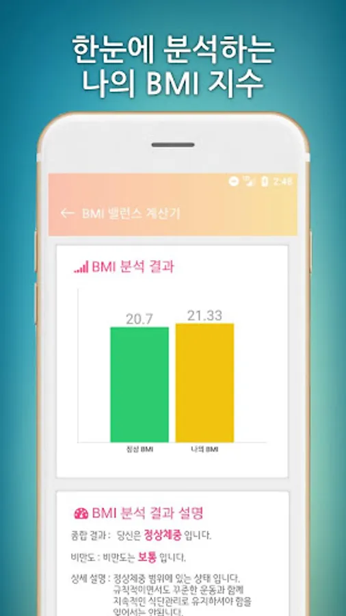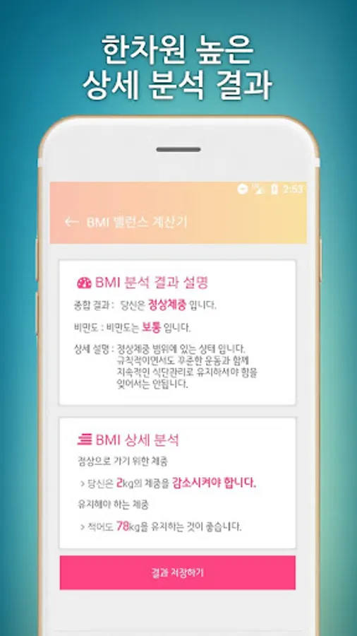 - visually compare results provide healthy range BMI index