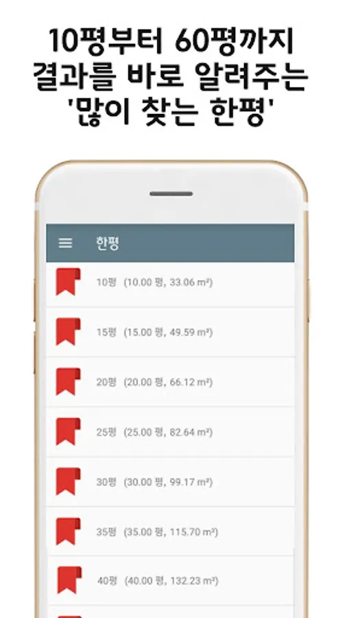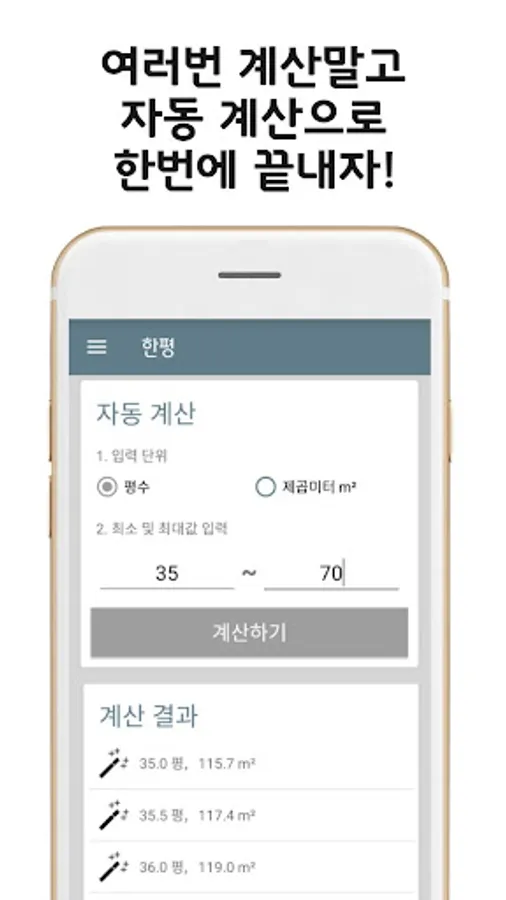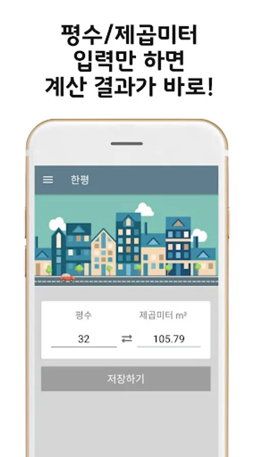 - 평/제곱미터 정보 기반으로 빠르고 정확한 단위 변환 계산 기능 제공
