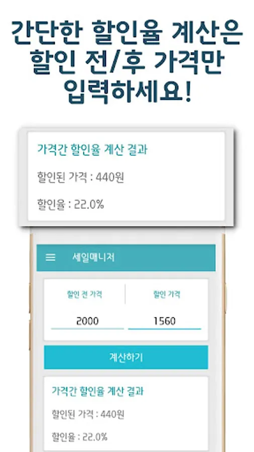 이런 순간 할인전가격과 할인후가격만을 넣어서 손쉽게 할인율을 계산할 수 있다면 아마 여러분들은 누구보다도 빨리 지금 가격이 최적의 가격인지 판단할 수 있습니다.