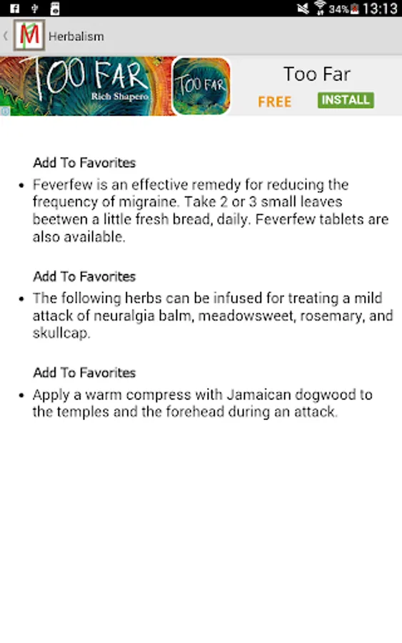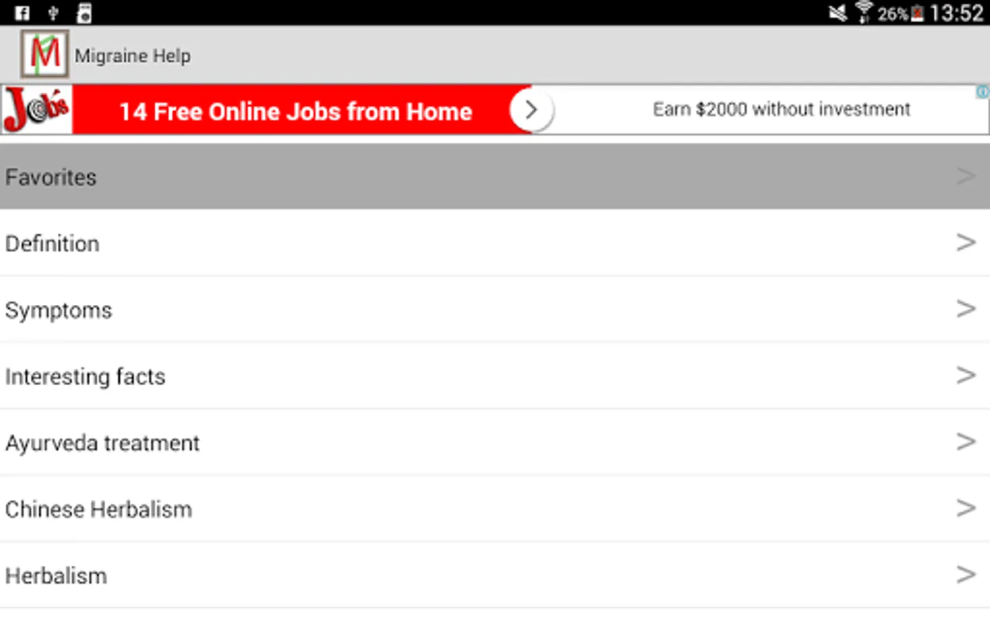 With this app, we have compiled ancient remedies for migraine headache. We give you only the successful ones. Here is the table of contents: