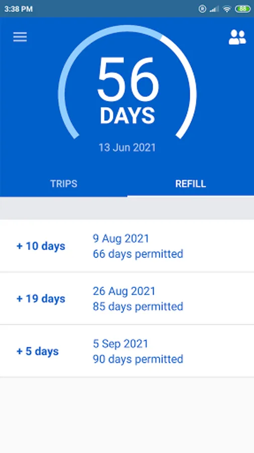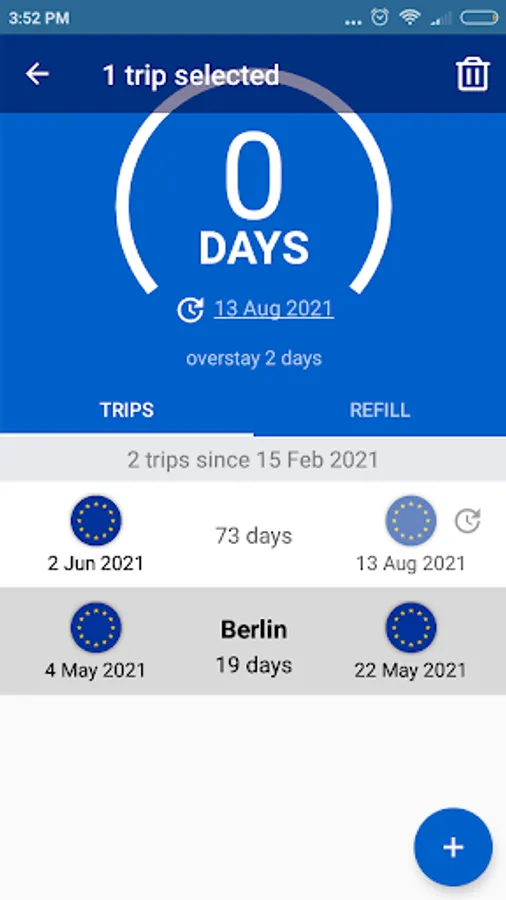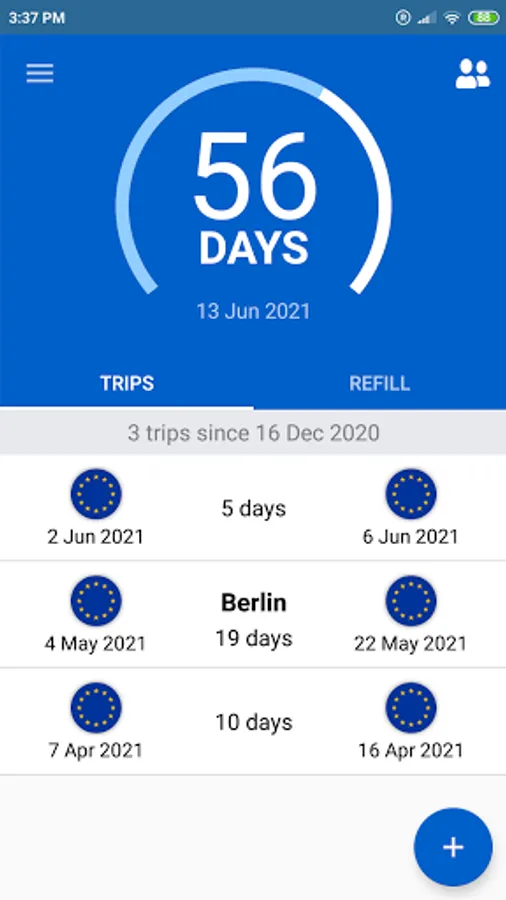 IMPORTANT: Holders of a 90-day Schengen multivisa must control that the visa is still valid during the trip. There is no logic to track the validity of a visa in the app yet.