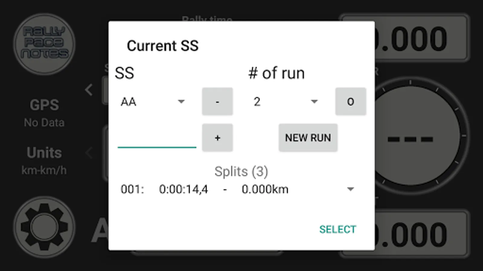 The second screen helps us in the special stages. It has a chronometer with different starting possibilities. Allows to save and compare splits between the different runs by the same special stage. And it also has a total trip and a regressive one.