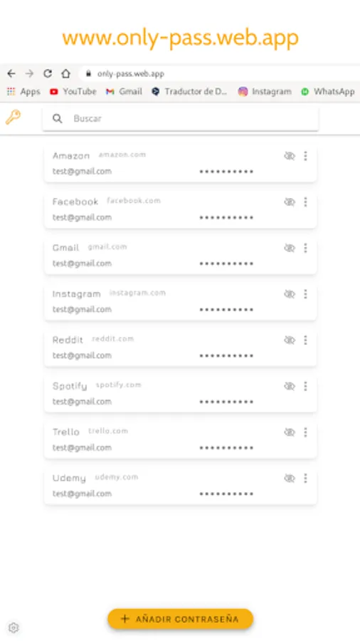 There are many password managers, the idea of OnlyPass is to be the simplest and most transparent. For this reason, it does not have folders, nor a thousand options that can mislead, only the option to add, edit and search among your passwords. In addition, through the application you can contact me for any questions, suggestions or whatever is needed.