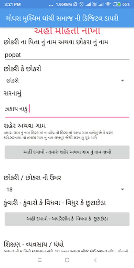 This is the application for godhra ghanchi muslim samaj. This is the diary application.