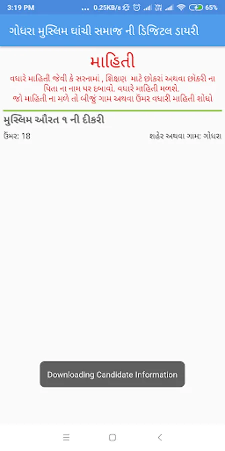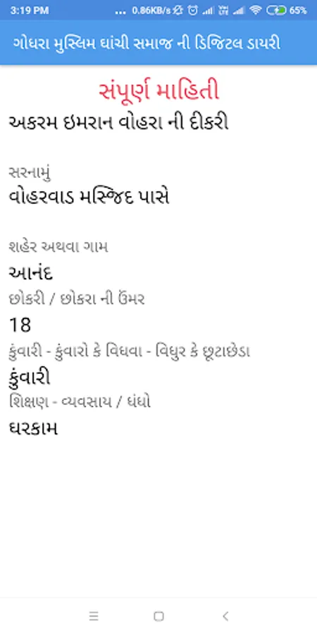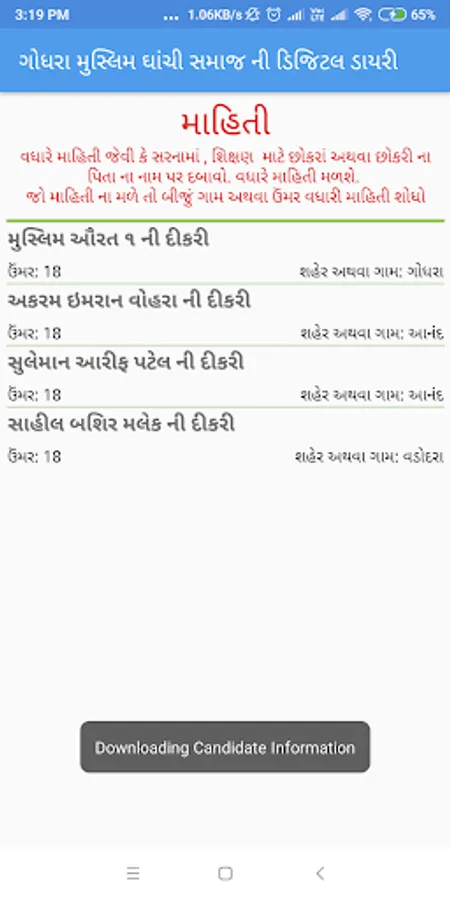 It has information for eligible muslim women of godhra muslim ghanchi samaj.