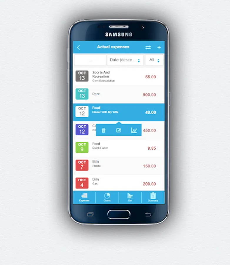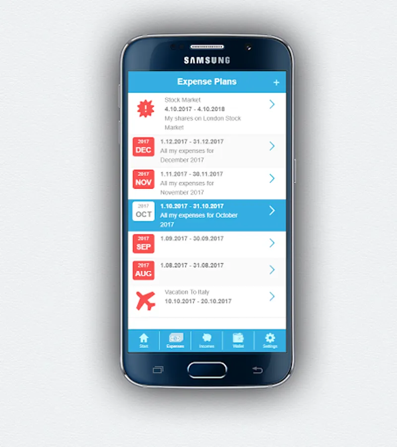 It’s designed to create an expense/income plan for a period of time and allows the user to add his actual expense/income. For example you can see how much we spend out from 2nd of August to 2nd of September in comparison with how much you would want to spend. You can create expense plans for each month or other different plans such as a vacation, a wedding or everything that comes to your mind.
