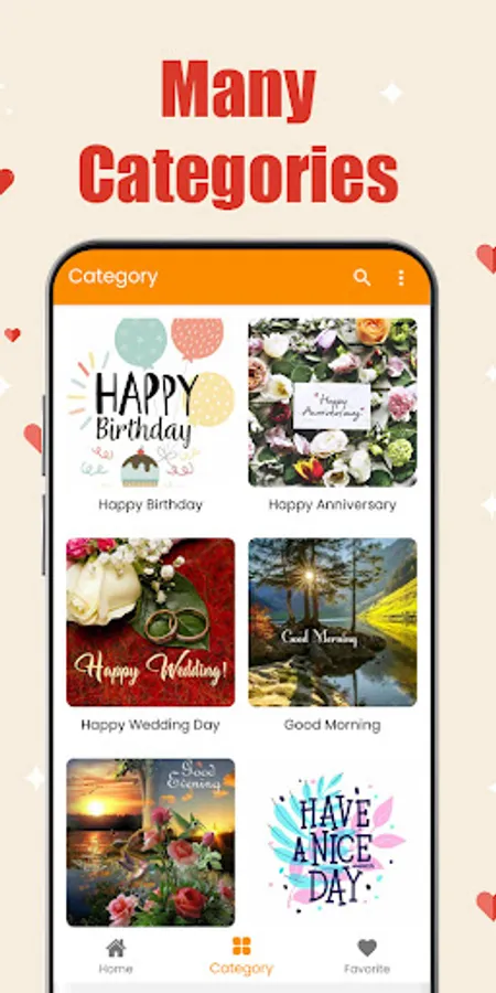 The «Greeting Cards for Every Day Wishes & Blessings» App is all kinds of ideas for greetings and wishes. All of them are divided into types depending on the addressee and the occasion. They are sorted by collection and mood: